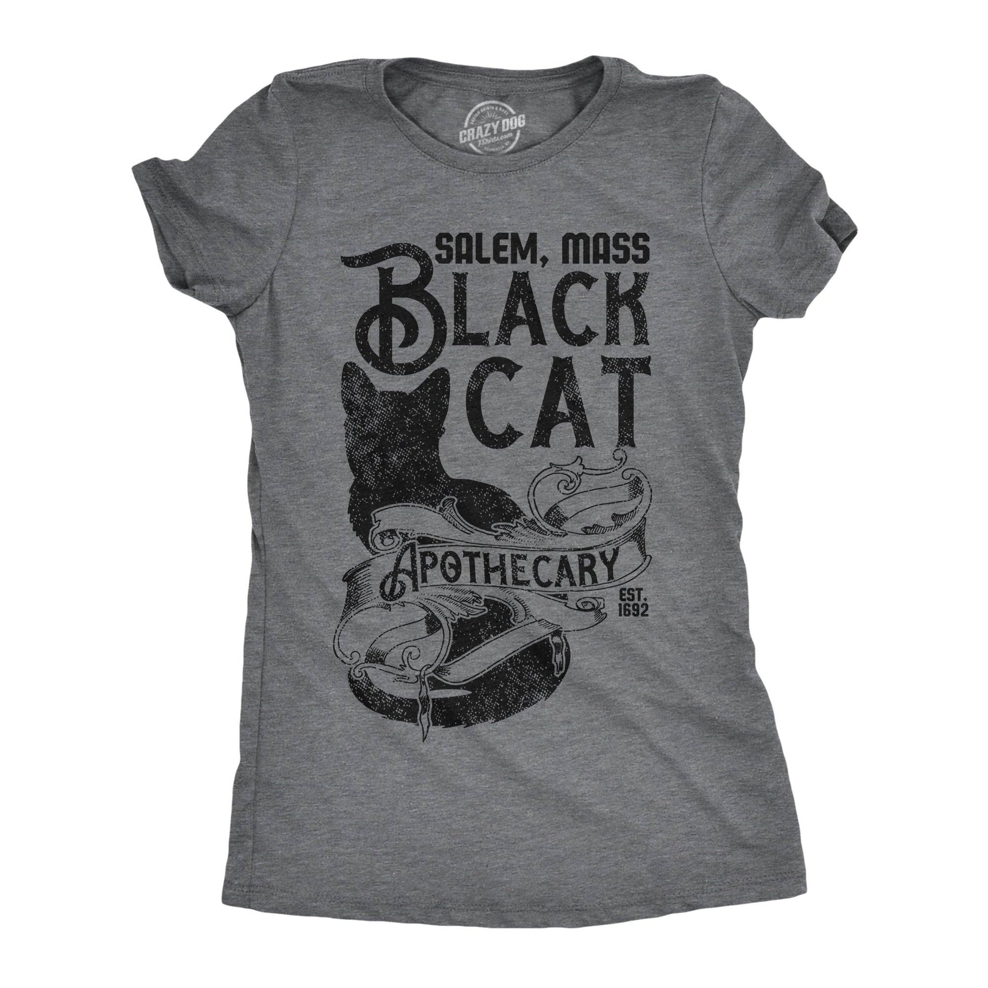 Crazy Dog T-Shirts presents the Black Cat Apothecary Women's T Shirt, a nod to Salem, Mass. This screen-printed T-shirt embodies our brand's love for humor, creativity, and great design, while celebrating individuality. It promises durability and comfort, adding a unique touch to your style. Be a part of our mission to bring joy to the everyday with this delightful addition to your wardrobe.