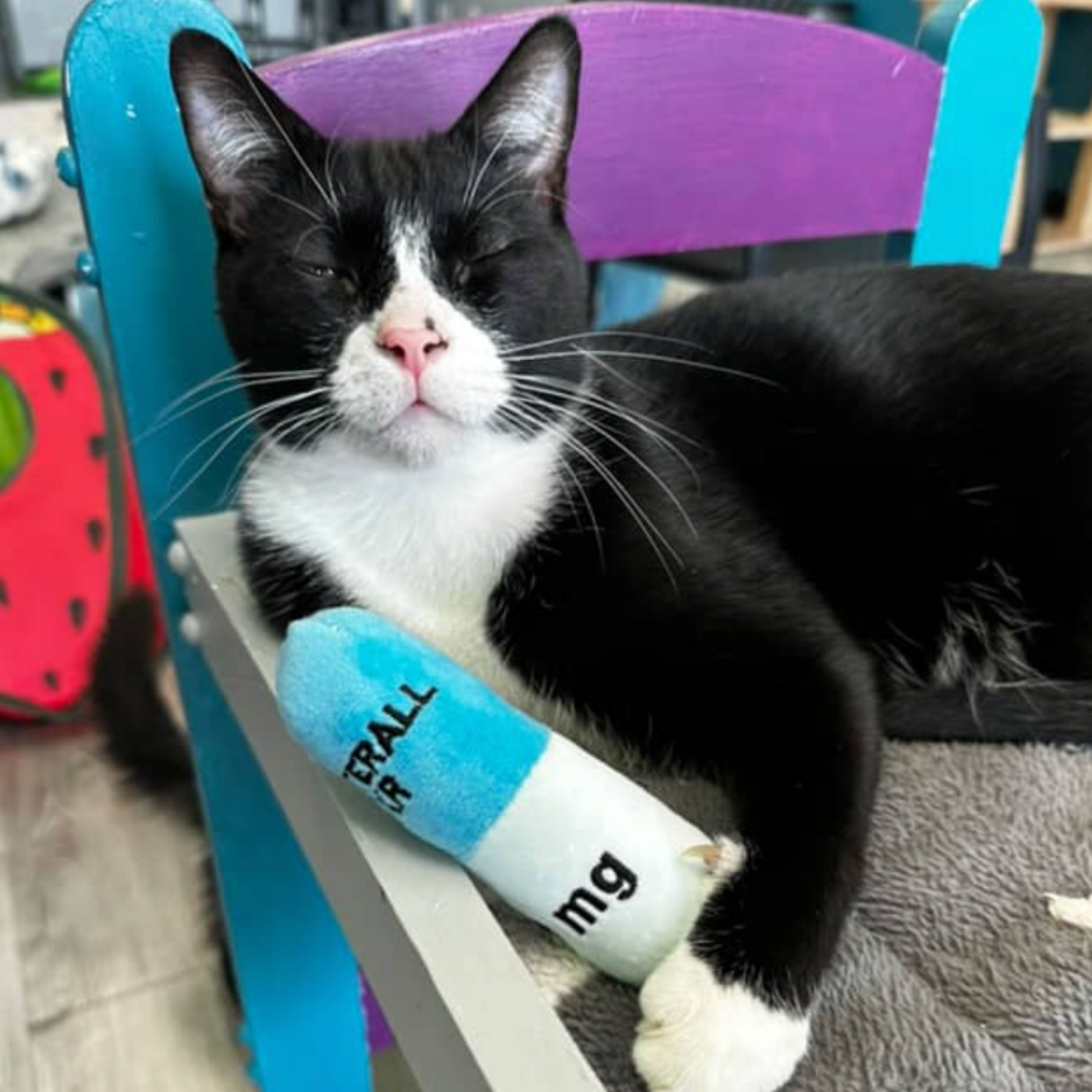 Don't worry! New photos coming soon, but I wanted to get this listed. Our new Catterall Catnip Kickers are filled with Catnip and crinkle paper. Very sturdy toy that will ENERGIZE your cat! Why should only the owners get a pick me up :) 4 kickers per pack. Each is 5 inches long by 2 inches wide.