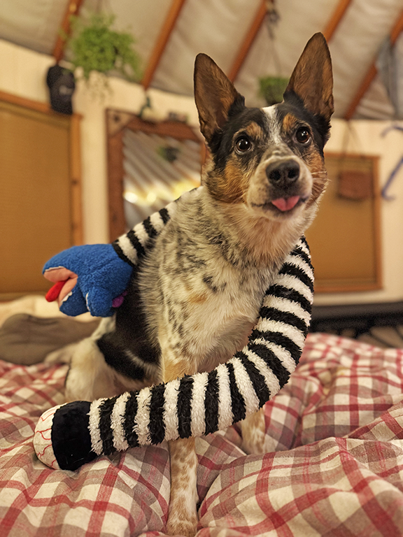 A feast for the eye... A large toy suitable for all dog sizes and ages crinkle, squeaky size: 30in